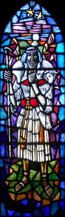 The windows, which depict the Beginning and the End are 10' high with a nativity scene on one and the figure of Christ praying in the garden of Gethsemane immediately prior to his arrest and trial.