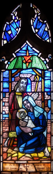 These 2 memorial stained glass windows were the gift of Mrs C. B. Cook in memory of her parents Arthur and Sara Holland.